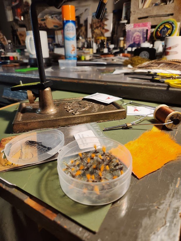 Further proof of this fly’s effectiveness is its presence in the boxes of almost all of our trout guides. Especially if you fish with Tom, Eric, Neil, Alex or myself, expect to see a little grey dry fly with an orange post on top tied onto your leader if fish start working on the surface. You can also find it in the bins of fly shops throughout the country, and in the boxes of some of the legends of our sport. If you want to pare down the dry flies you carry, this pattern should be at the top of your list. You can buy these flies from Tom directly, or tie a few yourself by using the recipe below. This is Tom’s original recipe, but plenty of substitutions can be made while still maintaining effectiveness.