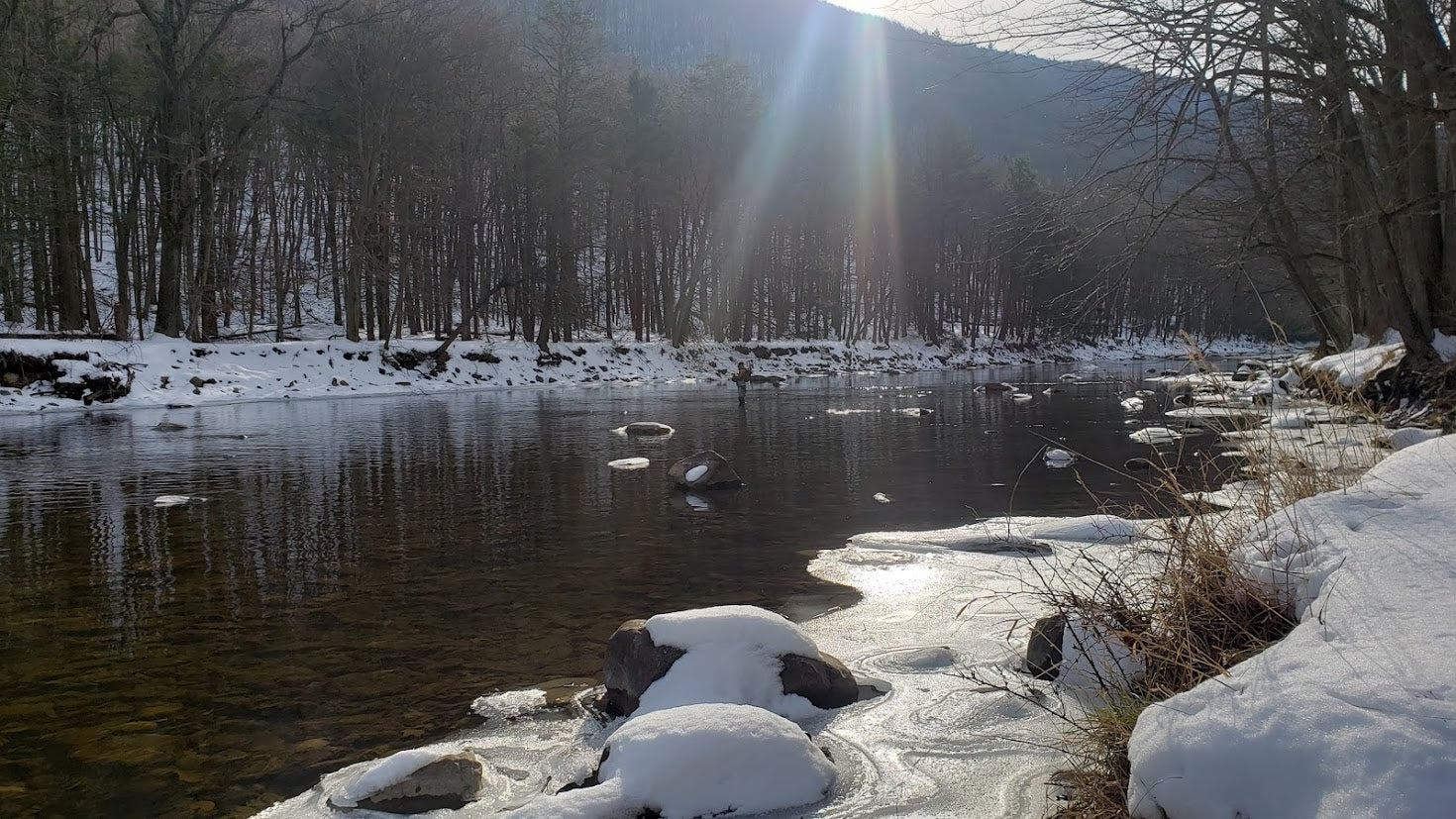 This section of the Yellow Breeches has enough spring influence to keep it ice free throughout the entire winter. Other sections are more susceptible to air temps and will more quickly form shelf ice.