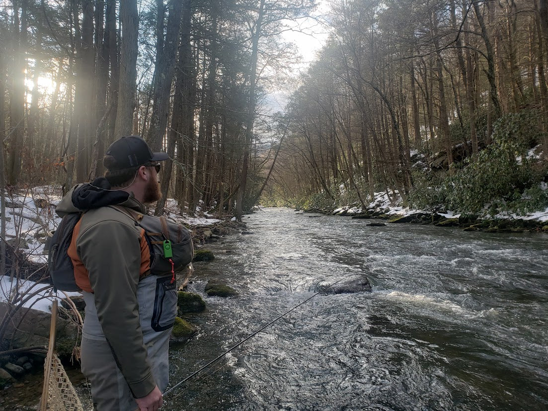 For baselayers, modern thermal and wool blend products are great. Something that is moisture wicking is helpful. Mid layers provide your first strong piece of insulation. This could be fleece or other synthetic blends. Today most companies make some very good low profile mid layers that don’t add too much bulk. For your main insulation, a puffy down or synthetic jacket should do the job. Lastly a shell in the form of a good wading jacket will be critical, especially anytime the weather takes a turn. A rain jacket can suffice here but spending the money on a good wading jacket is a great investment for the winter angler. For socks, a liner paired with a medium weight wool sock should be all you need. If your feet are still cold, try loosening your boot laces or switching to a larger boot altogether. Circulation is far more important than layers on your feet. Hats and gloves should also be on hand. Hats are straightforward. I prefer gloves with fingertips open to aid in line handling and knot tying.