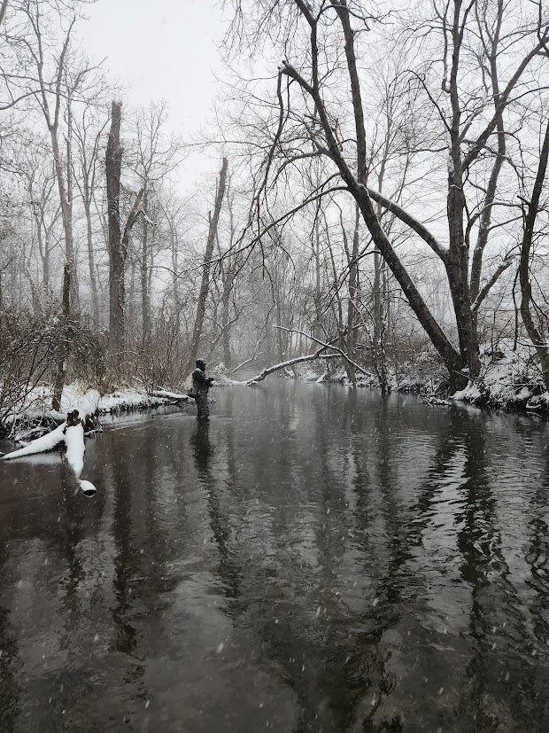 Understanding some basics about where the water in your local river comes from is a must. For example,in the Cumberland Valley  we have some true spring creeks that have water temperatures in the 50s every day no matter how hot or cold it's been. There are a number of spring creeks throughout the state, some with varying sizes of springs, and many mixing with runoff. Our Central PA limestoners are a good example of places where runoff and groundwater mix, but still have less volatile conditions. In the winter, you may see streams with partial spring influence stay in the low 40’s dropping into the 30s only at the coldest of times. On the opposite side of the spectrum, freestone rivers are completely fed by runoff, and thus bend to the will of the seasons. These rivers could freeze over entirely in the winter or become too warm in the summer. Tailwaters, with bottom releases at their dams also provide stable conditions similar to spring creeks, though these are a little less common in PA than in other states. Knowing where your rivers fall on this spectrum will make them more predictable. Sometimes, a river will change character the further you go downstream. One river might have a smattering of small springs throughout, while another might be sourced by one big one. This is all vital information for winter fishing. Though any river can be fished at times in the winter, many of our spring influenced waterways are reliable and predictable. A thermometer and a little bit of research about your region can provide some hints to figure out what your options are throughout the state in winter the months.