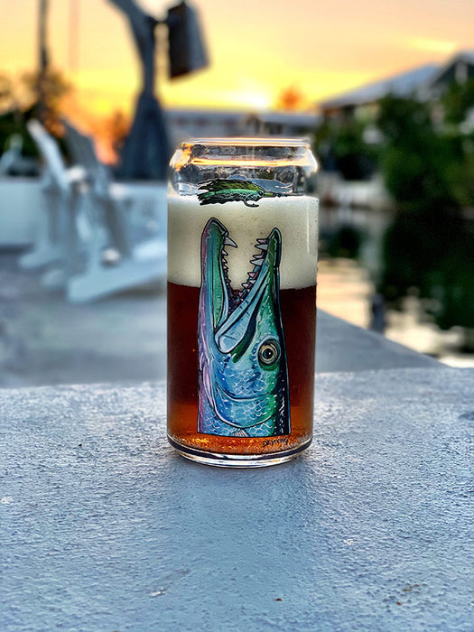 Our new, effortlessly cool 20 oz. Beer Can Glasses feature straight sides, inset lip and ridged heel. The Trout Glass showcases a Brown Trout Head on one side and a Rainbow Trout Head on the other. And the Saltwater Glass showcases a Tarpon Head on one side and a Barracuda Head on the other. Buy as singles or as sets. Not dishwasher recommended. Printed with eco-friendly Organic inks and Made & Printed in the USA.