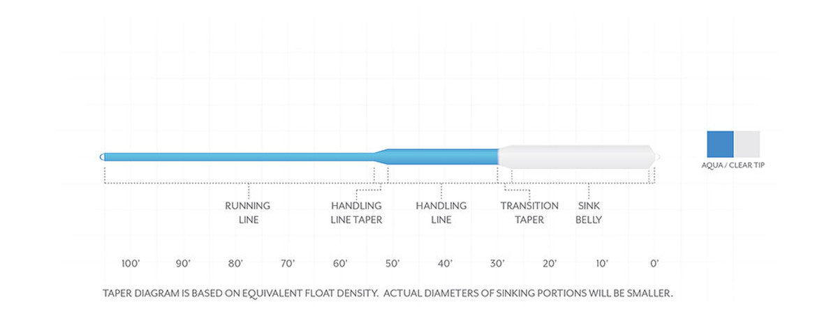 - 30’ intermediate low-visibility sinking head with handling line for better casting and control