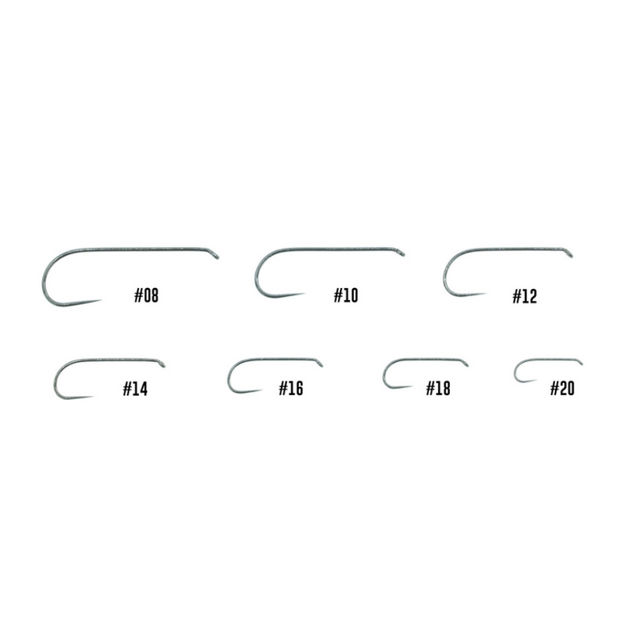 A barbless, down eye hook with a wide gape, the XC130 is a perfect all-around hook for many different straight, long-bodied dry fly and nymph patterns. Offered in a wide range of sizes and a low-profile black nickel finish, the slightly upturned point gives the XC130 excellent hooking and holding capacity on a barbless frame. This hook is part of our XC competition hook collection designed to give anglers and tyers an unbeatable value on a carefully crafted selection of shapes that hook and hold fish in stealthy black nickel barbless models. Sold in packs of 25.