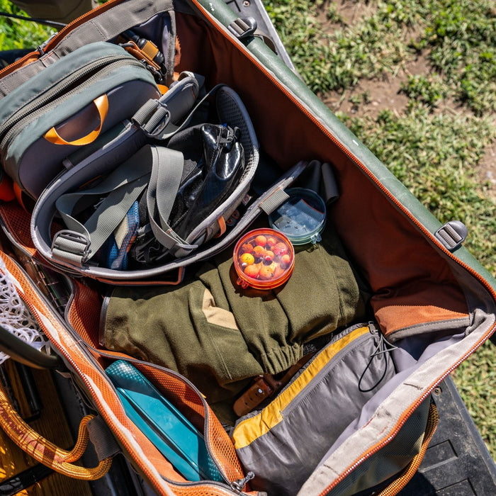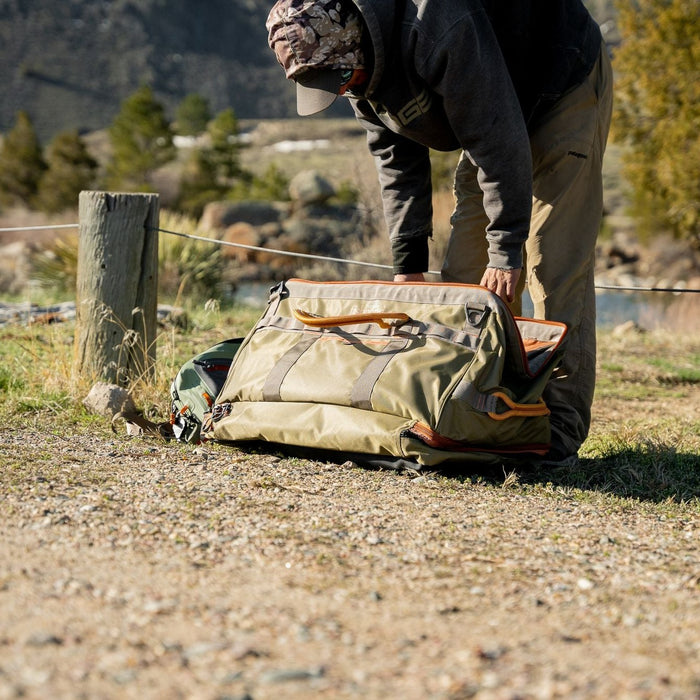 Looking for a premium-quality fly fishing duffel that keeps your gear organized and ready at a moment’s notice? Look no further than the Cimarron Wader Duffel. With its water-resistant exterior fabric and reinforced ballistic bottom, this bag is designed to handle the abuse of season after season in the back of your truck. It features a ventilated boot and wader compartment to ensure that your wet boots and waders don’t mingle with your dry gear. Two exterior stash pockets and two large interior coated mesh pockets keep your gear organized. The bag also comes with a detachable, washable insulated wader mat and a detachable shoulder strap for easy transport. If you have to pick a base camp for all the gear you’ll need on the water, this is it.