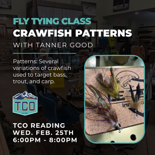 Join us at your favorite TCO location to learn more about the exciting world of fly fishing and fly tying. Whether you are a beginner or want to brush up on your casting skills, there is a class for you. If you don't see a class you are interested in, please let us know. We also offer private lessons tailored to your needs.