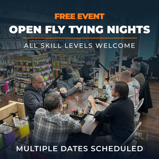 An instructor will lead the class in tying specific patterns and help individuals with skills and techniques to make tying fun and easy. Our classes range from beginner to expert, so make sure to choose the correct class to meet your needs. Students should bring their own vice and tools but we can provide if needed.