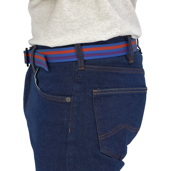 Low-profile, 100% recycled nylon webbing belt has an anticorrosive aluminum buckle and can be used in a pinch as a lash strap. Made in a Fair Trade Certified™ factory.