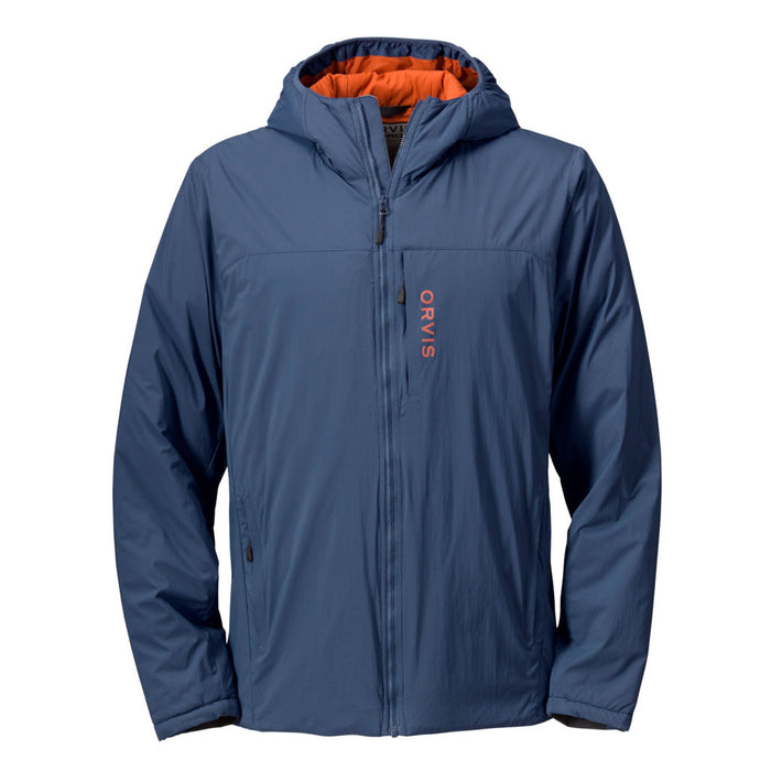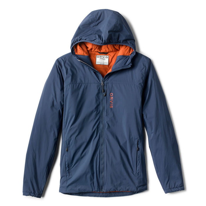 Orvis PRO fishing apparel is the most technologically advanced outerwear we’ve ever built. Using a combination of technical fabrication and action-specific design, Orvis PRO apparel takes on the elements and provides the protection necessary in even the harshest environs. The PRO Insulated Hoodie uses body-mapped insulation to provide optimal temperature control through a wide range of activity levels and environments. 80g PrimaLoft® Gold Active insulation (45% recycled content) protects the body’s core, the head, and arms with weightless, highly packable warmth ideal for active pursuits. Polartec® Alpha® (80g), (55% recycled content), originally designed for Special-Ops teams, regulates body heat and moisture through the side panels allowing the jacket to be comfortably worn through a wide range of temperatures and activities. The outer and liner are a 20D mechanical stretch ripstop nylon shell with unique coating to improve wind and weather resistance. Abrasion-resistant stretch-woven cuff panel and zippered, fleece-lined hand-warmer pockets. Zippered chest pocket and internal zippered security pocket that doubles as a stuff sack. Low-profile scuba-style hood for easy layering and better visibility. High-quality YKK® zippers and DWR (Durable Water Repellent) coating. Active fit is ideal for layering.