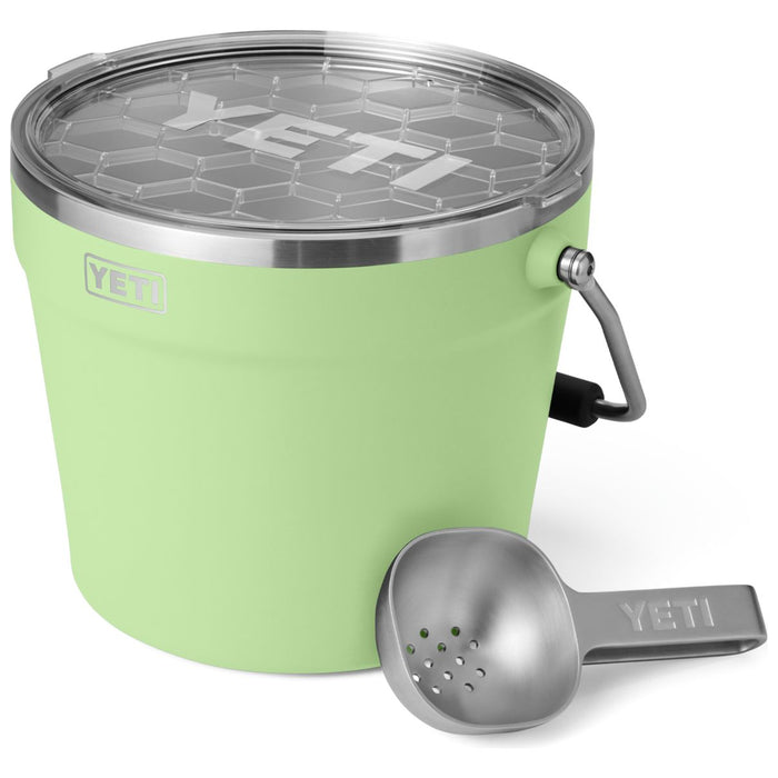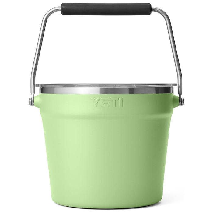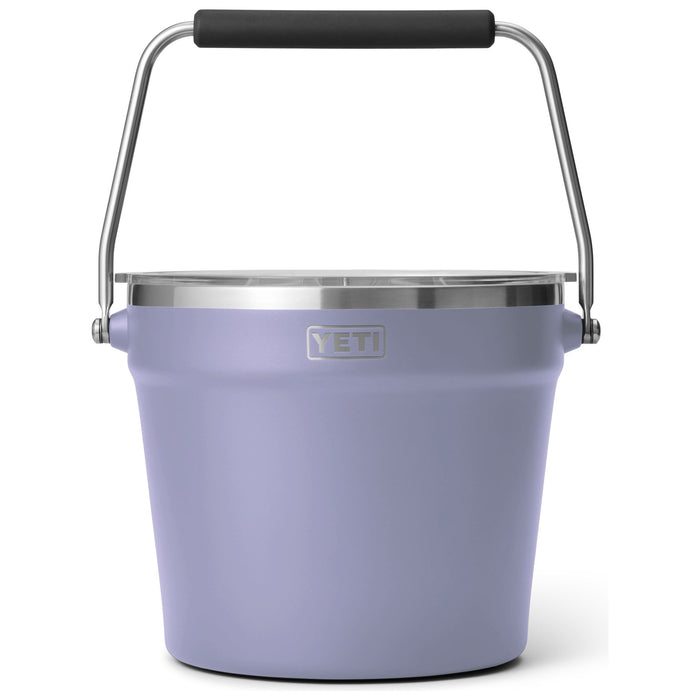 Pass around another round and bring the party to the wild. This durable stainless steel beverage bucket is part of the YETI® Rambler® Family. Its large capacity and rotating handle make it easy to haul a six pack or three bottles of wine, and the bucket keeps drinks cold all night long thanks to its double-wall vacuum insulation. Built for easy use, it comes equipped with a BearFoot™ Non-Slip Ring to avoid unwanted slips, clanks, and scratches and is dishwasher safe – because no one wants more work. With the lid in place it makes a great ice bucket for happy hours around the fire and is stackable for easy storage when the lid is removed.