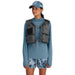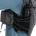 - The front vest array includes two quick-access drop pockets, four zippered pockets and two small stretch mesh pockets
