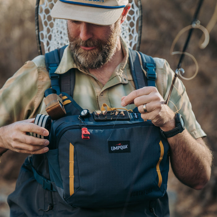 Designed to bring you your best day on the water, the NorthFork Pack Collection consists of a chest pack, waist pack, and sling pack, each with a range of features. From spacious compartments and intuitive organization systems to durable materials and ergonomic designs, these packs are built to get anglers out exploring vast wilderness, bluelines, or urban escapes