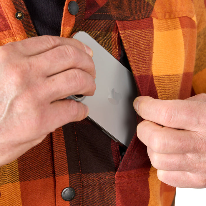 Outfitted with fleece-lined hand pockets, a reinforced zippered chest pocket, and easy release snaps, the Bankside lined flannel is an off-the-water essential built for colder climates.