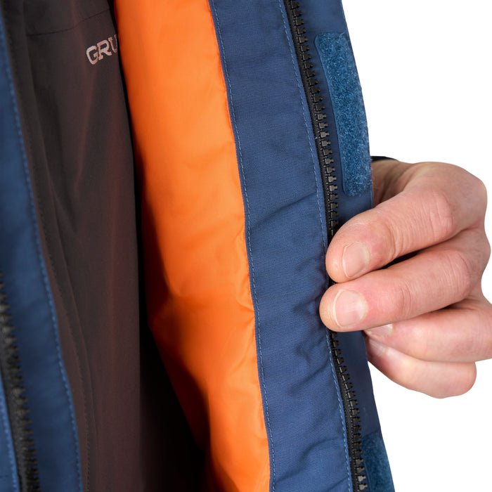 - Placketed Center Front Zipper Construction Offers Protection from Wind Driven Rain