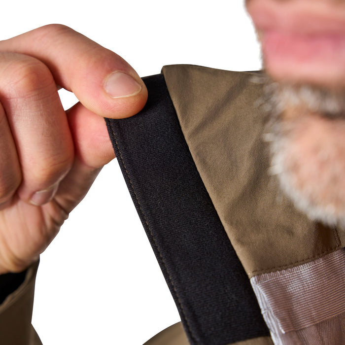 Modernized for today’s fly angler, the Vector Wading Jacket combines classic styling with strategic pocketing systems to store everything necessary for a successful day on the river. Offering a high pocket waterline for deep wading scenarios, this angler-minded jacket offers impeccable 20K / 15K waterproof/breathable performance while boasting fishing-focused details such as large fly box storage pockets with drainage ports and a waterproof, dunkable sleeve sleeve/cuff shingle system so your arms don’t get wet when dunked in-river.