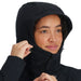 - 3-panel hood with high collar and 3-point adjustment drawcord to seal out the wind and cold
