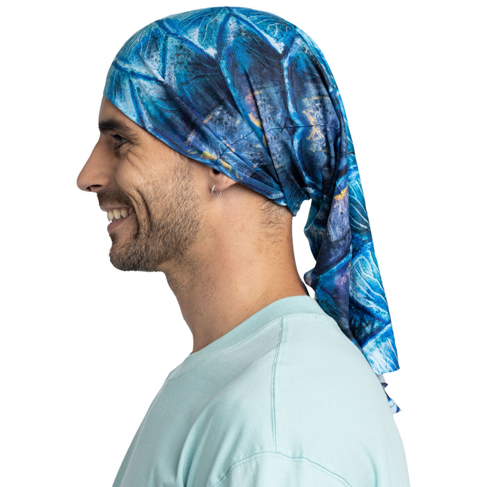 Lightweight Multifunctional neckwear made from recycled plastic bottles, delivering UPF 50 sun protection and evaporative cooling properties. Running, Jumping, Hiking, Fishing, Paddling, Camping - what's your favourite summer activity? Any way you wear it, you'll be feeling cool, fresh and protected from the sun on every summer outing.