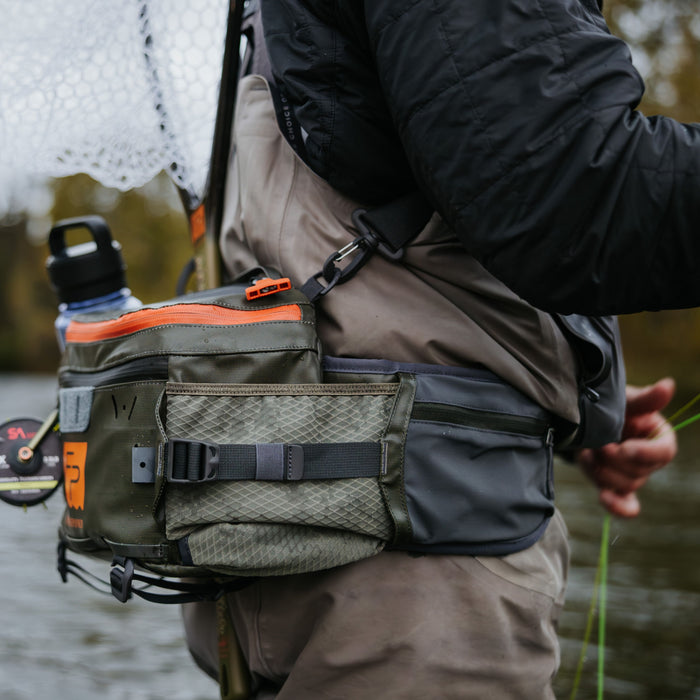 When the road less traveled leads you to untamed corners of the wilderness, it helps to bring gear that is just as rugged as the landscape you find yourself in. Enter the Stormshadow Lumbar Pack—meticulously designed to conquer the elements and thrive in the most challenging environments. Built with waterproof fabric and coated zippers, this pack is designed for anglers who demand top-tier performance and unbeatable durability. An integrated waterproof pocket featuring the TRU Zip zipper guards your valuables against submersion, allowing you to explore with confidence. The top flap of the pack features integrated magnets, holding it open for hassle-free access to your gear. Behind a coated YKK AquaGuard® water-resistant zipper, you'll find a large storage compartment featuring a removable divider, with 8 liters of storage space for all the fly boxes and accessories you'll need. Integrated water bottle holders, exterior accessory attachment points, a net slot, and hip belt stash pockets round out a platform that allows you to tackle whatever Mother Nature throws your way.
