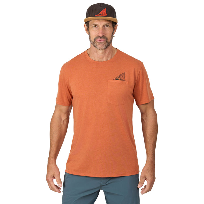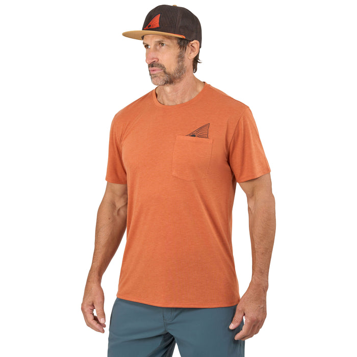 The Grundéns Species Pocket Tee has a blended fabric composition that gives it an ultra-soft and performance feel, with a graphic element that subtly showcases a tailing Redfish integrated into the t-shirt pocket design.