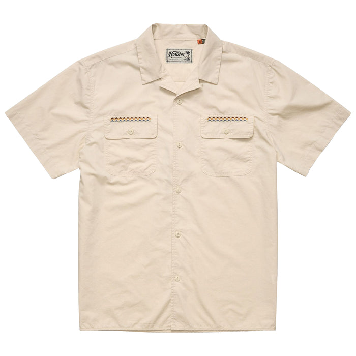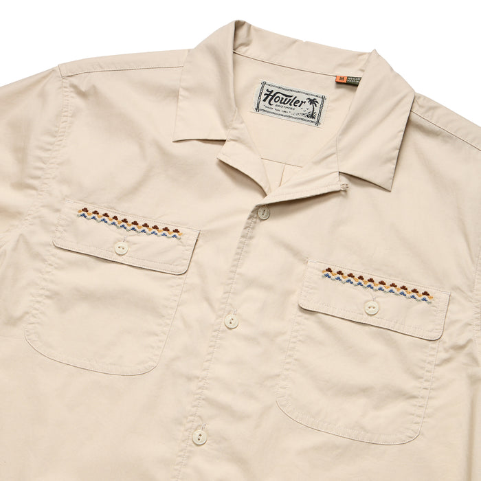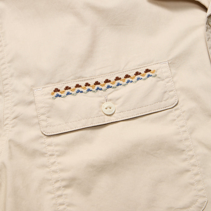 Our take on the classic camp collar design is constructed of lightweight cotton with dazzling geometric front-pocket and collar embroidery. No matter if you live right on the beach or 1000 miles inland, the Shores Club shirt comes equipped with all the benefits of a full fledged member with no application required. Join the club.