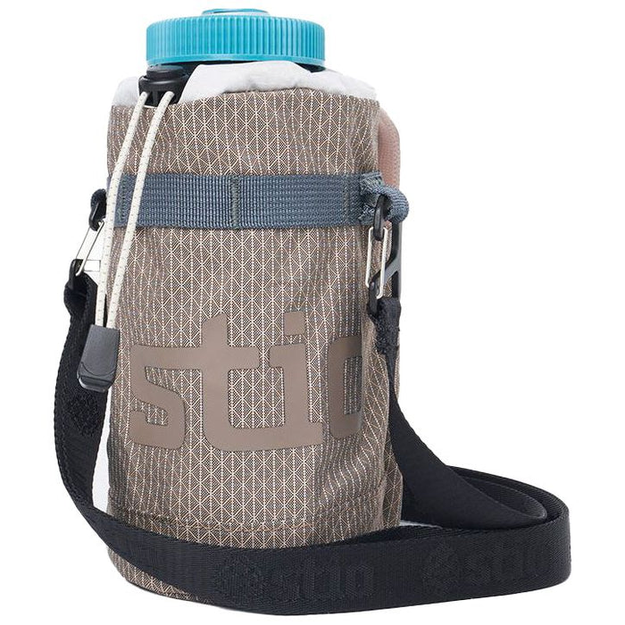 The open top fits a range of bottle shapes and sizes up to 32 ounces and cinches closed so it doesn’t slip out. Sling the adjustable shoulder strap for cross-body carrying, or remove it and use the smaller hook-and-loop straps to attach the bottle onto a bike or hip belt. The small zippered outer pocket keeps a phone or snack handy without weighing down your pockets. Its lightweight, durable ripstop material is made with 99% recycled poly and a PFAS-free DWR finish that can hold up to seasons of wear.