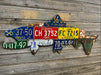 “No-Frame” - All of my pieces are built by wrapping license plates around a ¾-inch wooden base and are ready to hang straight out of the box. Each comes pre-fitted with a reinforced hanging wire, so you can mount the piece however you feel in your space.