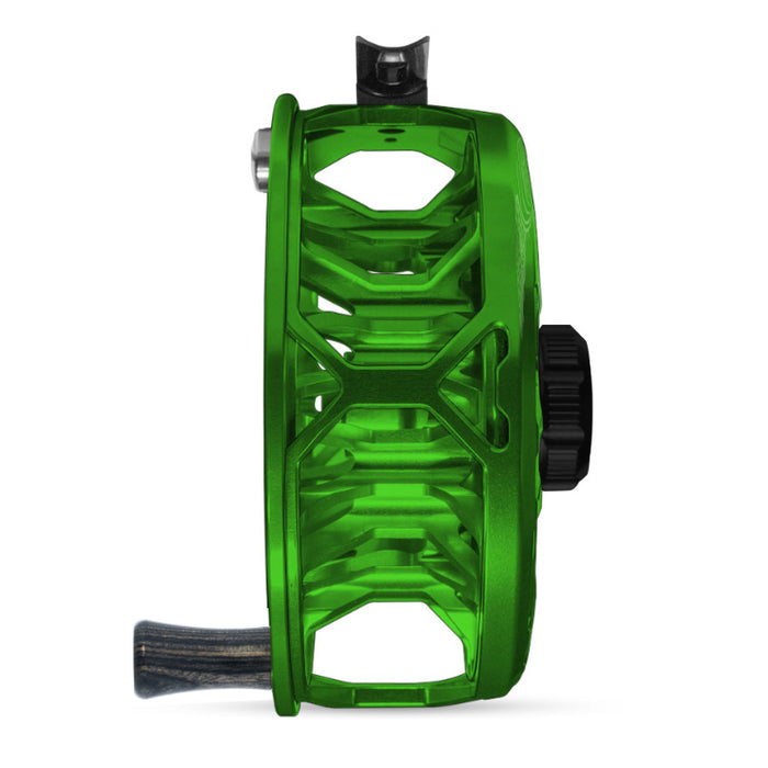 - Laser engraved fresh and saltwater flies on reverse side of drag plate that rotate as line is being retrieved