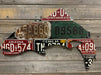 “With Frame Add-on” - While my pieces look amazing hung without a frame, I feel that mounting the artwork on Barnwood really adds definition and depth, and perfectly compliments aged license plates. Should you choose to have your piece framed, please specify whether you would like Espresso-stained or natural barnwood as the background in the “Special Notes and Requests” textbox prior to adding it to your cart.