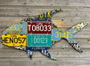 “With Frame Add-on” - While my pieces look amazing hung without a frame, I feel that mounting the artwork on Barnwood really adds definition and depth, and perfectly compliments aged license plates. Should you choose to have your piece framed, please specify whether you would like Espresso-stained or natural Barnwood as the background in the “Special Notes and Requests” textbox prior to adding it to your cart.