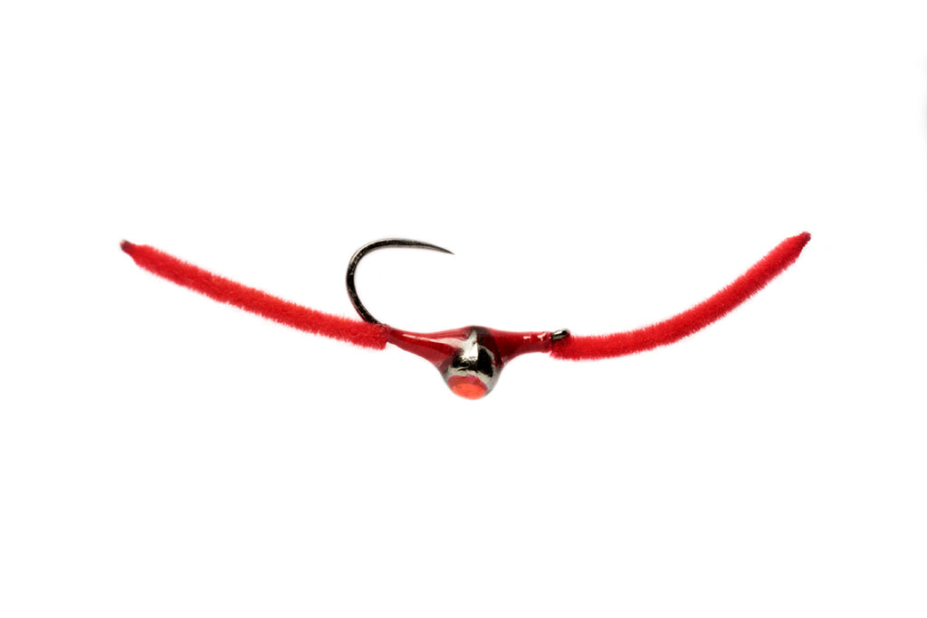 Howard Croston came through again this year with some stellar patterns. This simple chenille worm utilizes our Tungsten Drop Bead as well as a hot spot on top of the bead for a fluorescent pop.