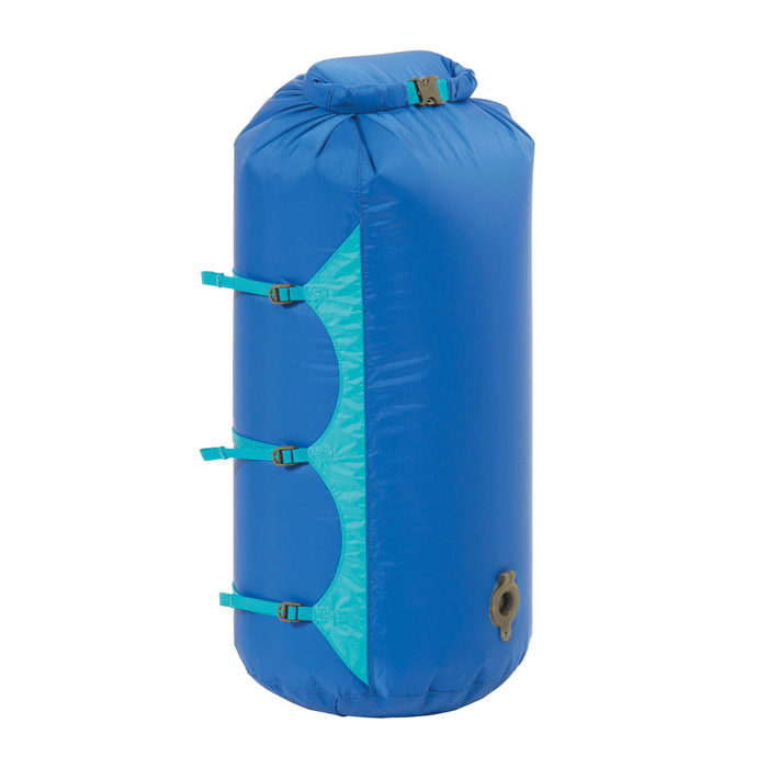 The Waterproof Compression Bag is extremely easy to use. With roll-top closure, a grab handle at the bottom and a flat valve for purging excess air, it is extremely versatile. By attaching the Snozzel (sold separately), it can also be used as an efficient pump bag for Exped mats.