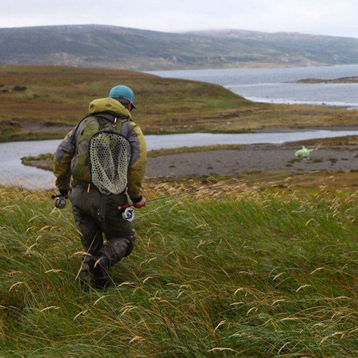 Nomad Nets are constructed with carbon fiber/fiberglass composite material. The result is a very lightweight and durable net. Nomad Nets are built for the conditions that prevail where great fishing exists; they are waterproof, UV protected, and float like a cork. All Nomad Nets come standard with a rubber bag. The first ever Nomad Net. The basket is big enough to scoop it all, and the short handle/cord & clip combination means it's always secure behind your back until you need it.