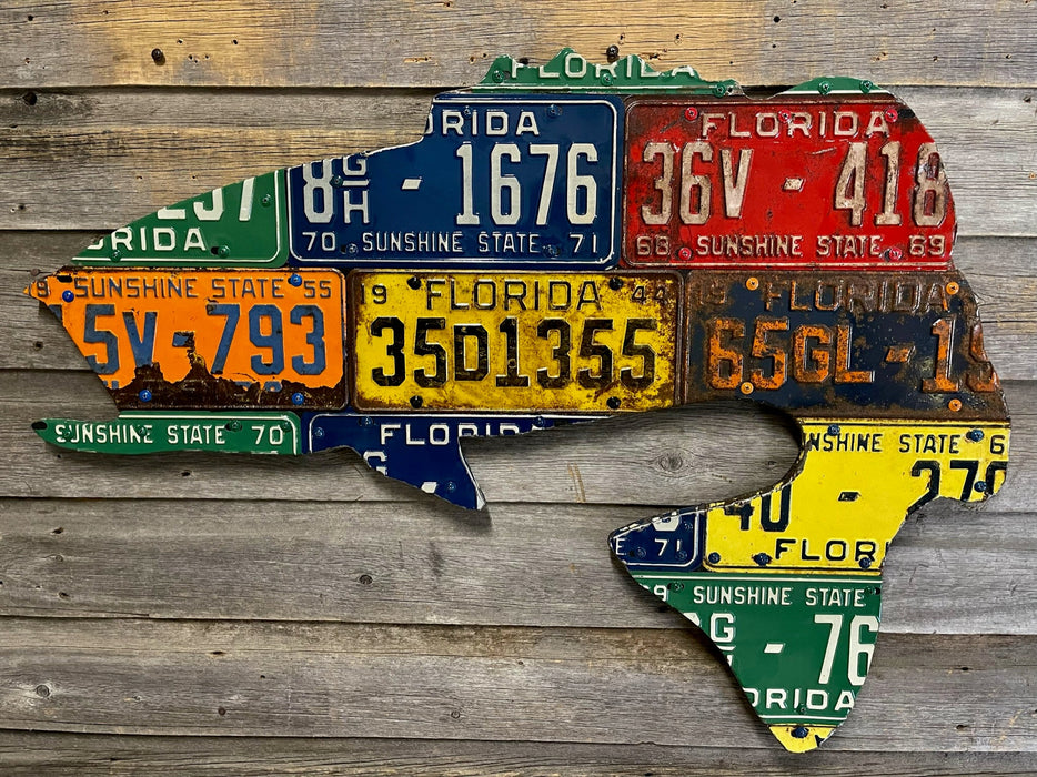 “With Frame Add-on” - While my pieces look amazing hung without a frame, I feel that mounting the artwork on Barnwood really adds definition and depth, and perfectly compliments aged license plates. Should you choose to have your piece framed, please specify whether you would like Espresso-stained or natural Barnwood as the background in the “Special Notes and Requests” textbox prior to adding it to your cart.