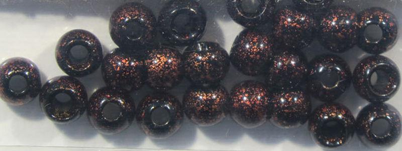 These brass beads are countersunk to facilitate sliding around the hook bend.