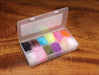 A unique custom mix that we have developed along with fly designer Greg Senyo. It can be used as wings, collars, dubbed bodies or veiled-wool style heads. It is a mix of Ice Dub and 1-1/2 inch acrylic staple fiber. A must for Salmon, Steelhead and saltwater patterns,