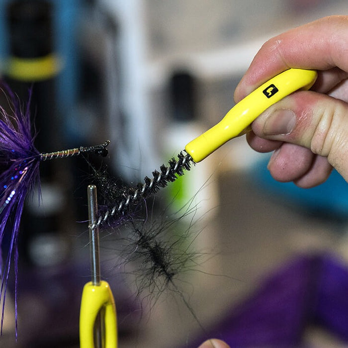 The only dubbing brush tool that you’ll need. The ergonomic powder coated handle feels great on the hands, while the nylon bristles and stainless steel helix spine are tough enough to tackle any material in need of a good brushing.