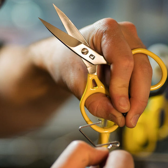 The broad blades offer a stouter feel and increased stability, regardless of what you're cutting. The oversized handles are ergonomically designed to accommodate the tyers who got in the hand line twice, and the blades are honed to perfection right here in the USA. These are an excellent pair of scissors for working with big materials and tying big flies.