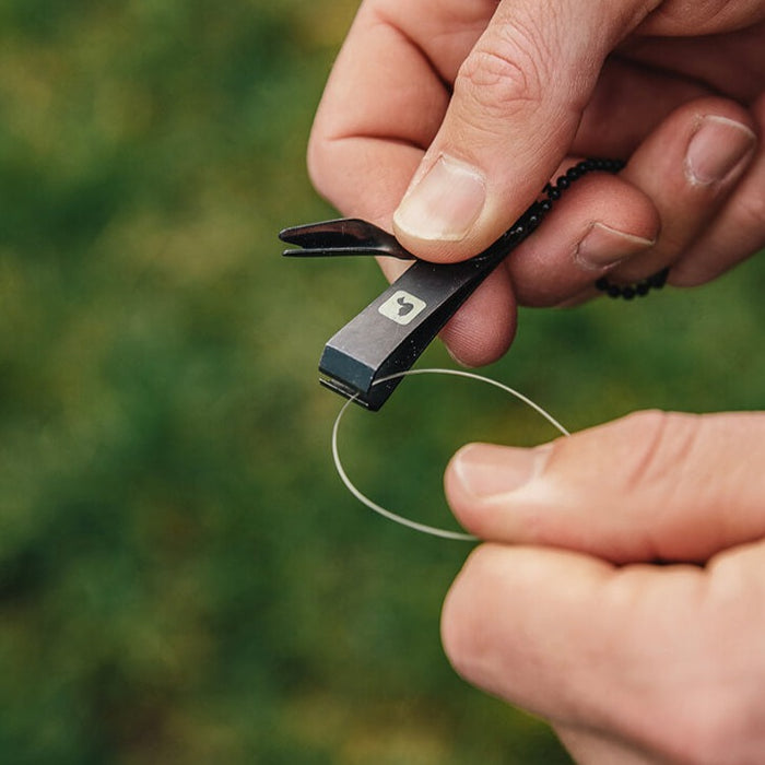 The all-in-one nippers. Stainless steel cutting jaws, knot tool, hook clearing needle, and chain attachment.