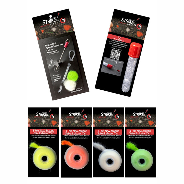 Presentation is perhaps the most important part of catching fish. When fishing nymphs beneath an indicator in front of spooky trout, having the perfect indicator could be the difference between landing a giant and going home disappointed. This is the best indicator we've found. Easy to attach and remove, this kit includes an applicator tool, a sampling of white and chartreuse wool, and 12 inches of size small replacement tubing. It's subtle as it lands on the water, sensitive when fish touch the fly, and won't get bogged down with water. Combo pack now includes four colors of yarn (black, white, orange, chartreuse.) Size large tubing is used to make larger indicators, size small is used to make smaller indicators. Imported.