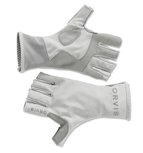 The sun protection you need with a minimal design that won't interfere with your fishing. 50+ UPF. Breathable and quick-drying, partial synthetic leather palm. In light gray. Spandex, synthetic leather. Imported.