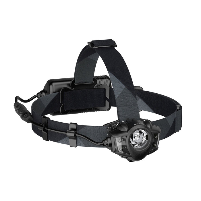 The rechargeable lithium ion battery pack comes clipped to the headstrap and can be moved to your belt or pack with an extended power cable. A USB charging cable comes with the headlamp, making it easy to replenish the Apex Rechargeable’s battery power.