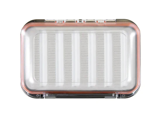 Strong, durable, clarified ABS plastic boxes with positive snap tight latch and stainless steel hinge pins. High density, custom made, long lasting slit foam liner that will hold tons of flies. Rubber water tight gasket seals the box tight.