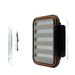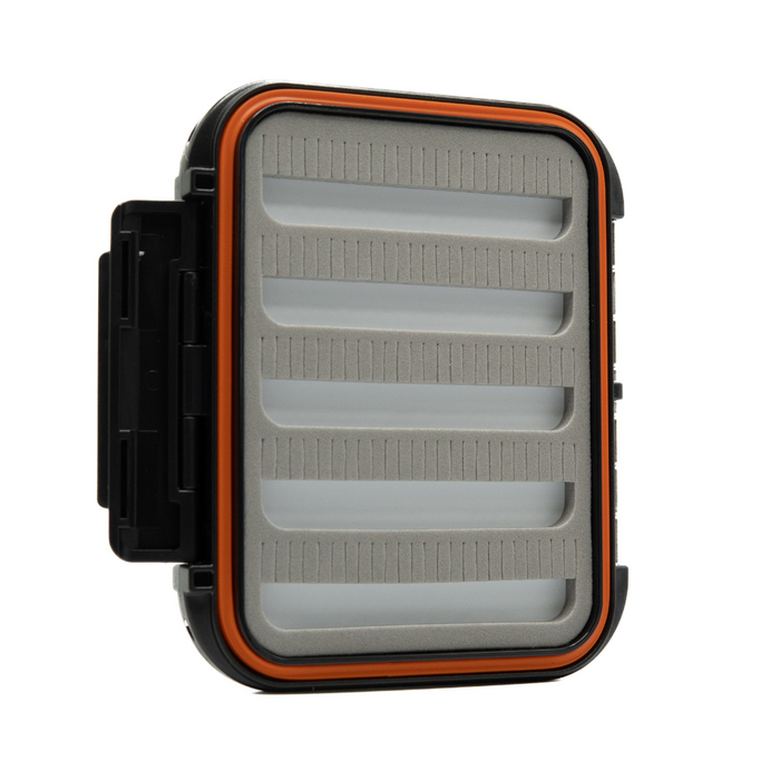 Strong, durable, clarified ABS plastic boxes with positive snap tight latch and stainless steel hinge pins. High density, custom made, long lasting slit foam liner that will hold tons of flies. Rubber water tight gasket seals the box tight.