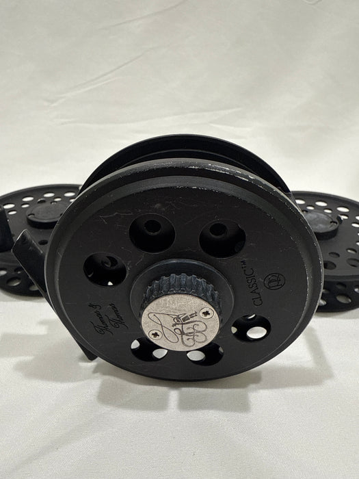 Thomas and Thomas Classic Reel with 2 Extra Spools. The reel and drag function as intended. The reel frame has scratches on the frame and drag knob. The spools are super clean.