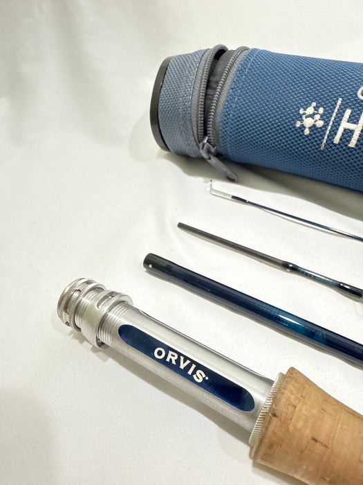 This Orvis Hydros 9' 4wt has a mid flex and is a great rod for fishing dries for trout. This rod has definitely caught lots of fish and can still catch a lot more. It is in great shape. Rod comes with rod tube.